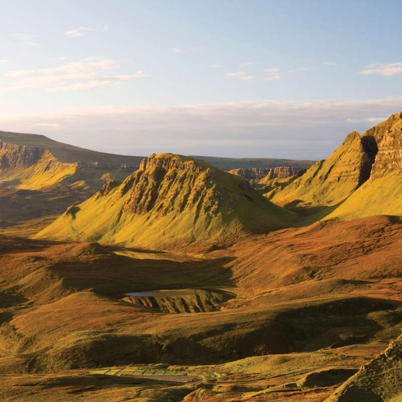 A day of tales, myths, and iconic scenery awaits! We begin our morning exploring the enchanting Fairy Pools, a series of natural waterfalls with crystal clear water on the River Brittle. Hear stories of Bonnie Prince Charlie’s escape from the mainland as we drive to the thriving village of Dunvegan for lunch to indulge in local delights.